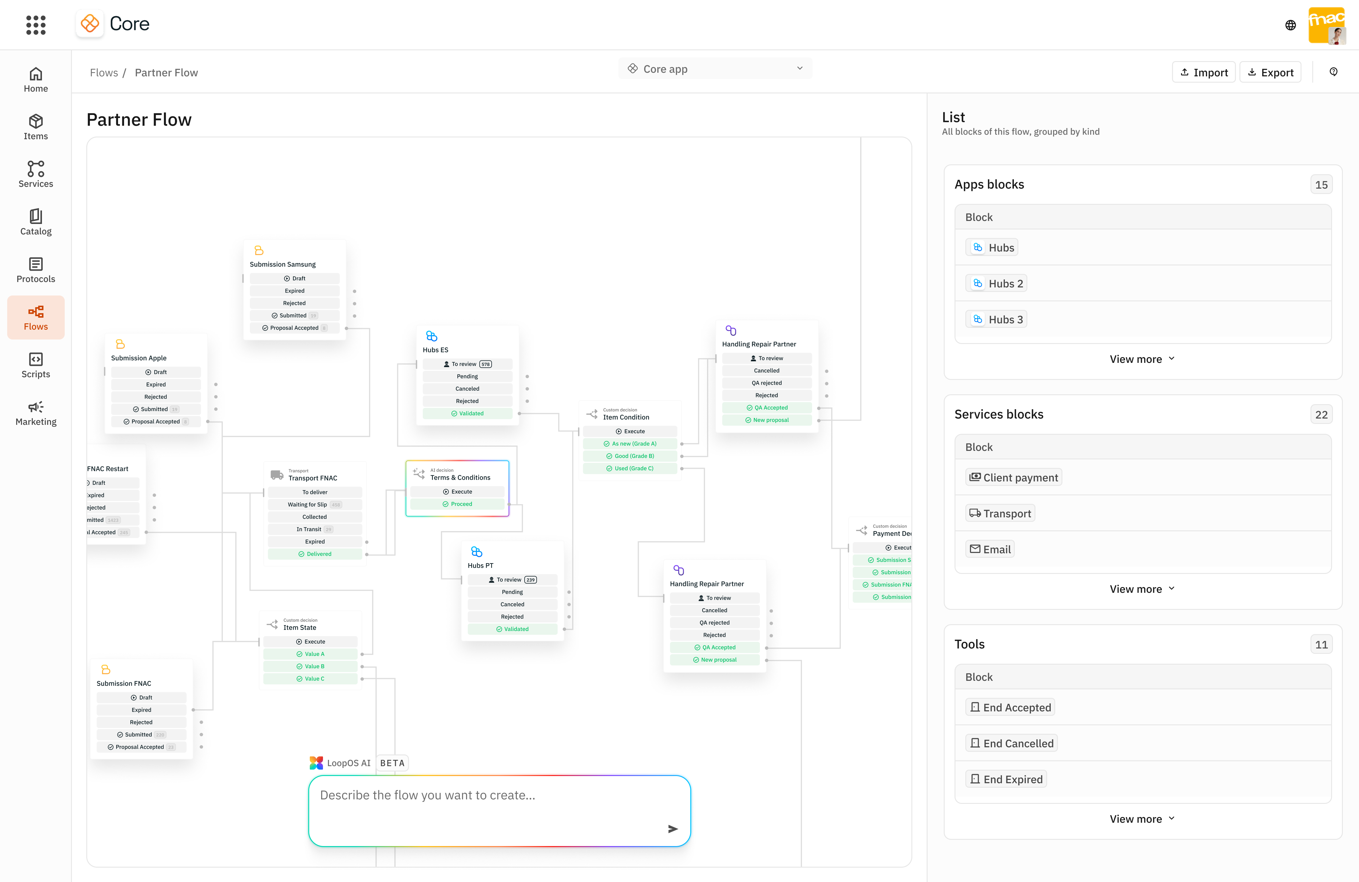 Core is fully modular and flexible. It is designed to orchestrate multiple flows simultaneously, allowing you to run different programs (like trade-in, repair, and returns) with specific rules, partners, and logic for each one.